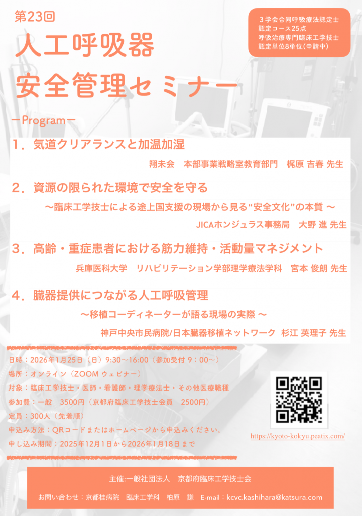 第23回人工呼吸器安全管理セミナーのおしらせ